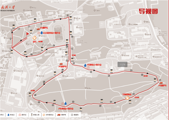 三、珞珈“Mini马拉松”比赛期间(11月14日15:40至17:00)交通路线管制